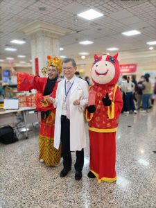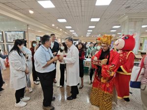 為慰勞同仁辛勞,活動中特別安排「攤位巡禮」。高雄榮民總醫院院長陳院長率領行政團隊,在由同仁扮演的馬人偶陪同下,化身財神爺逐一走訪各攤位,親手發放醫院特製紅包袋與象徵福氣的糖果,向同仁與就診民眾傳遞新春祝福。現場歡笑聲不斷,氣氛溫馨熱絡。